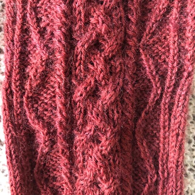 ケーブル編みの靴下(エンジ)