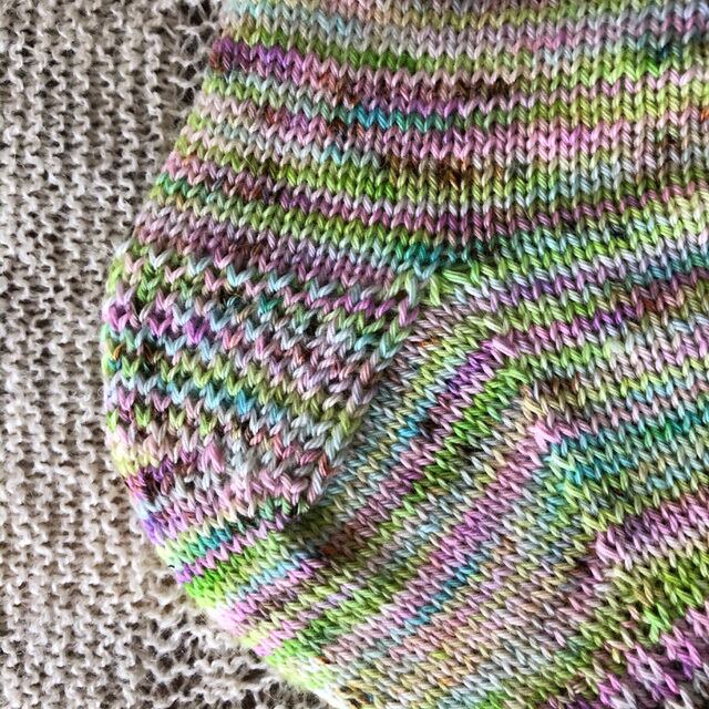 メリヤスあみの靴下(24センチくらい・ピンク×緑)
